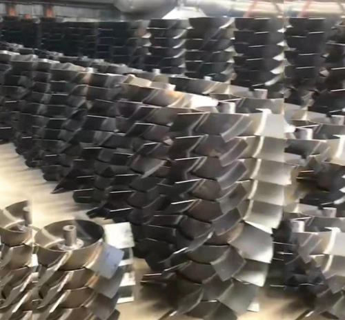 风机叶轮是由优质高强度合金钢板焊接而成,轮盖是锥弧形,有利于进气,风机叶片焊于轮盖与轮盘之间,焊缝经探伤查验,气动性能好,效率高,轮盘和轮毂径向选用止口,并选用铰制螺柱联接,整体叶轮通过静动平衡校正和超速试验。